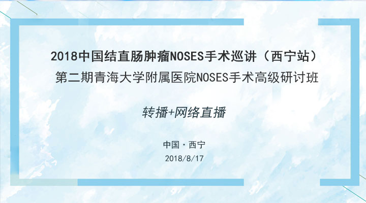 转播+网络直播|“2018中国结直肠肿瘤NOSES手术巡讲(西宁站) 第二期青海大学附属医院NOSES手术高级研讨班”于2018年8月17日在中国·西宁召开,本次会议由广州高通影像技术有限公司提供专业手术转播及网络直播服务!敬请期待!