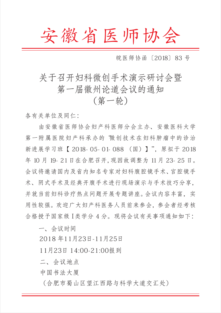 妇科微创手术演示研讨会暨第一届徽州论道会议
