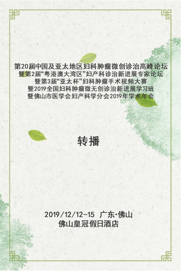 转播|第20届中国及亚太地区妇科肿瘤微创诊治高峰论坛